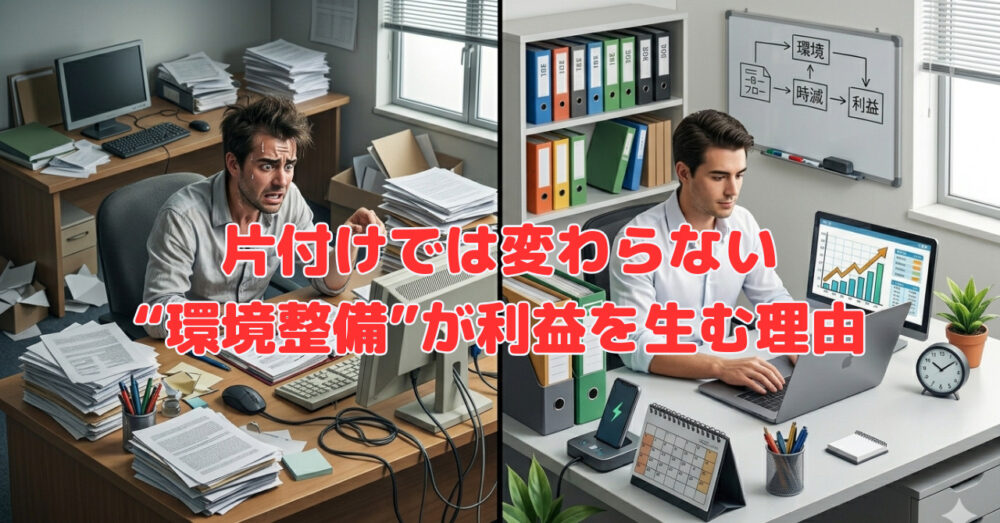 移転か整備か。経営者が間違えやすい“コスト判断” 2026.04.23 業務整理 移転か整備か。経営者が間違えやすい“コスト判断” 業務整理 | 2026.04.23 広い事務所にすると、なぜ利益が減るのか⁈ 2026.04.22 業務整理 広い事務所にすると、なぜ利益が減るのか⁈ 業務整理 | 2026.04.22 「事務所が狭い」と感じた時に、やってはいけない経営判断 2026.04.21 業務整理 「事務所が狭い」と感じた時に、やってはいけない経営判断 業務整理 | 2026.04.21 経営が加速する会社は『環境』から整える 2026.04.20 業務整理 経営が加速する会社は『環境』から整える 業務整理 | 2026.04.20 『げんたの仲』で64歳の新しい挑戦❣ 2026.04.19 日曜日の日記帳 『げんたの仲』で64歳の新しい挑戦❣ 日曜日の日記帳 | 2026.04.19 「たかが片付け」などと侮っていませんか⁈ 2026.04.18 おすすめ 「たかが片付け」などと侮っていませんか⁈ おすすめ | 2026.04.18 業務効率を落とさない環境整備の仕組み 2026.04.17 業務整理 業務効率を落とさない環境整備の仕組み 業務整理 | 2026.04.17 業務効率と生産性を上げる環境整備「片付け5ステップ」 2026.04.16 業務整理 業務効率と生産性を上げる環境整備「片付け5ステップ」 業務整理 | 2026.04.16 会社の片付けは“経営の流れ”を変える 2026.04.15 業務整理 会社の片付けは“経営の流れ”を変える 業務整理 | 2026.04.15 片付けてもすぐ元通り…『会社の片付け』が続かない本当の理由 2026.04.14 業務整理 片付けてもすぐ元通り…『会社の片付け』が続かない本当の理由 業務整理 | 2026.04.14 『片付け力』ー正しく評価されていますか⁈ー 2026.04.13 業務整理 『片付け力』ー正しく評価されていますか⁈ー 業務整理 | 2026.04.13 日曜日の日記帳 〜娘と歩く桜並木で感じた変化〜 2026.04.12 日曜日の日記帳 日曜日の日記帳 〜娘と歩く桜並木で感じた変化〜 日曜日の日記帳 | 2026.04.12 ご自宅に『専用洗剤』いくつありますか?「代用思考」でコストカット… 2026.04.11 おすすめ ご自宅に『専用洗剤』いくつありますか?「代用思考」でコストカ… おすすめ | 2026.04.11 「手放した瞬間、流れは変わる」『進化変容』する覚悟はありますか? 2026.04.10 業務整理 「手放した瞬間、流れは変わる」『進化変容』する覚悟はあります… 業務整理 | 2026.04.10 成長は増やすことではなく「そぎ落とすこと❣」 2026.04.09 業務整理 成長は増やすことではなく「そぎ落とすこと❣」 業務整理 | 2026.04.09 会社の片付けを“コスト”で終わらせますか?“利益を生む投資”に変えますか… 2026.04.08 業務整理 会社の片付けを“コスト”で終わらせますか?“利益を生む投資”… 業務整理 | 2026.04.08 効率空間の最適化~ゴミ箱は丸型派?四角派?~ 2026.04.07 業務整理 効率空間の最適化~ゴミ箱は丸型派?四角派?~ 業務整理 | 2026.04.07 “小さな選択”の積み重ねが未来を変える 2026.04.06 業務整理 “小さな選択”の積み重ねが未来を変える 業務整理 | 2026.04.06 日曜日の日記帳~春を感じた小さな幸せ時間~ 2026.04.05 日曜日の日記帳 日曜日の日記帳~春を感じた小さな幸せ時間~ 日曜日の日記帳 | 2026.04.05 節目に問い直す“経営者”の「住まい環境アップデート」 2026.04.04 おすすめ 節目に問い直す“経営者”の「住まい環境アップデート」 おすすめ | 2026.04.04 快適で効率的な職場作りは“小さな1歩”の継続❣ 2026.04.03 業務整理 快適で効率的な職場作りは“小さな1歩”の継続❣ 業務整理 | 2026.04.03 小さな会社に潜む『片付け』が定着しない“属人化”の罠 2026.04.02 業務整理 小さな会社に潜む『片付け』が定着しない“属人化”の罠 業務整理 | 2026.04.02 【経営の盲点】掃除では解決しない「探しモノ」と「時間のロス」 2026.04.01 業務整理 【経営の盲点】掃除では解決しない「探しモノ」と「時間のロス」 業務整理 | 2026.04.01 散らかるループから抜け出す片付けの「黄金法則」 2026.03.31 業務整理 散らかるループから抜け出す片付けの「黄金法則」 業務整理 | 2026.03.31 “収納スペース”が足りない‼根本の原因は… 2026.03.30 業務整理 “収納スペース”が足りない‼根本の原因は… 業務整理 | 2026.03.30 2,700日の継続~成果が見えない時にやめない理由~ 2026.03.29 おすすめ 2,700日の継続~成果が見えない時にやめない理由~ おすすめ | 2026.03.29 経営者ほどハマる落とし穴~住まいの片付け“3つのNG”~ 2026.03.28 おすすめ 経営者ほどハマる落とし穴~住まいの片付け“3つのNG”~ おすすめ | 2026.03.28 利益を下げる“安っぽい環境”になっていませんか? 2026.03.27 業務整理 利益を下げる“安っぽい環境”になっていませんか? 業務整理 | 2026.03.27 社長の想いが伝わらない会社の共通点 2026.03.26 業務整理 社長の想いが伝わらない会社の共通点 業務整理 | 2026.03.26 『片付け』はセンスや手先の器用さではない‼ 2026.03.25 業務整理 『片付け』はセンスや手先の器用さではない‼ 業務整理 | 2026.03.25 Page 1 of 5512345Next ›Last »