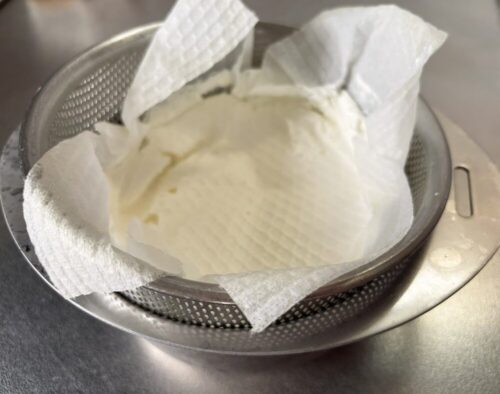 キッチンペーパーを敷いたザルで